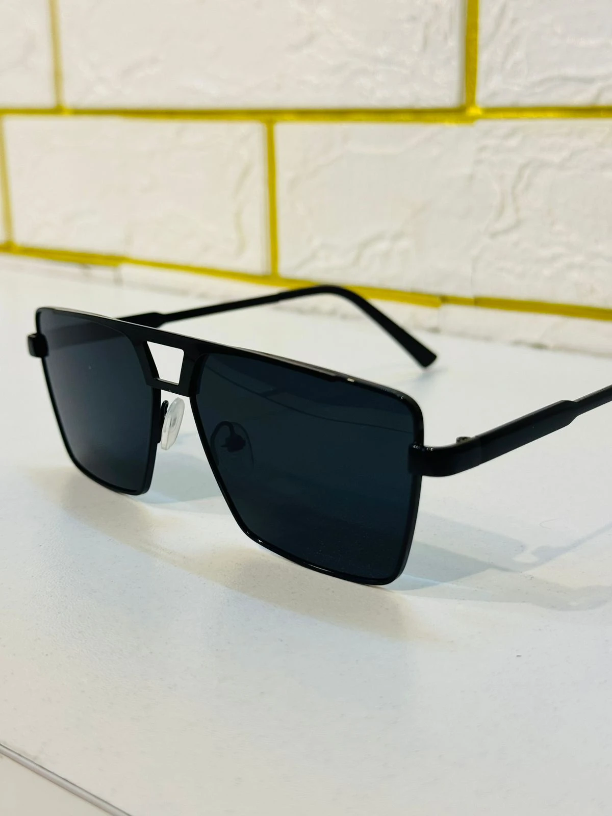 Bold Framework. Unmatched Style. Amader Aviator Square Sunglasses-ti tader jonno jara ekti strong ebong geometric look khujchen. Er industrial-style double bridge ebong sleek metal frame-ti apnar face-ke ekta sharp ebong structured appeal dibe.