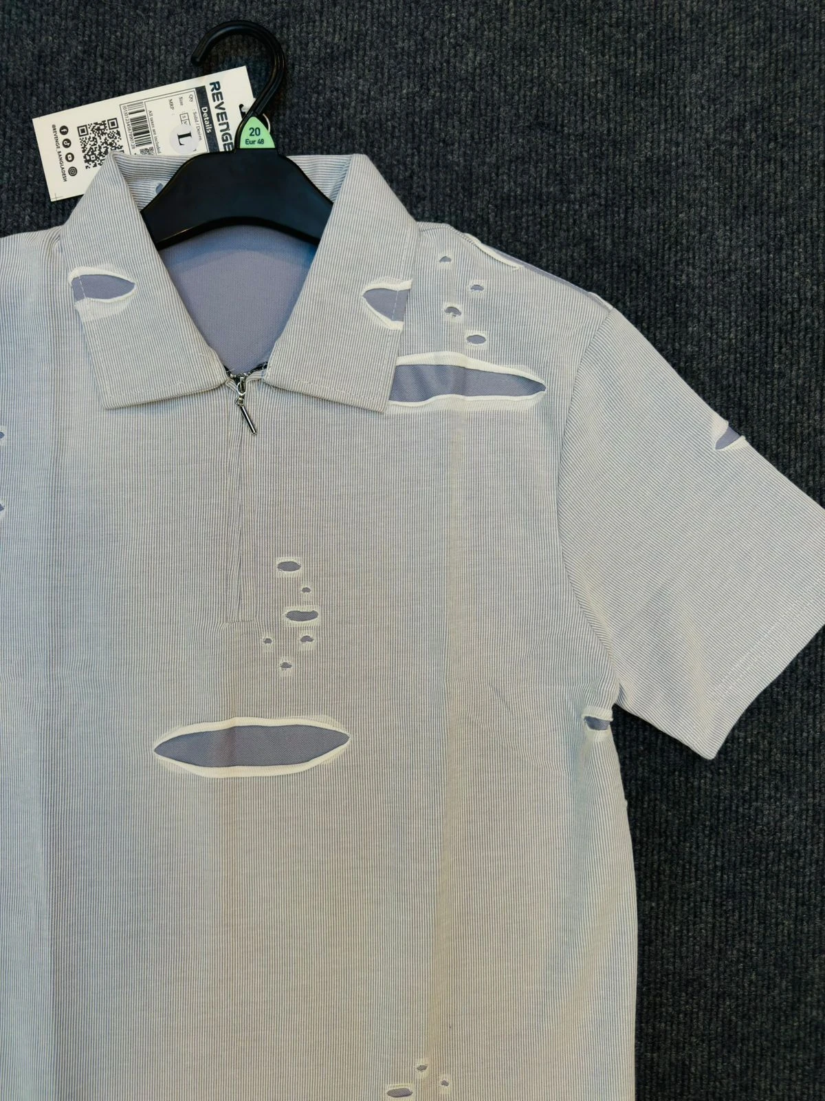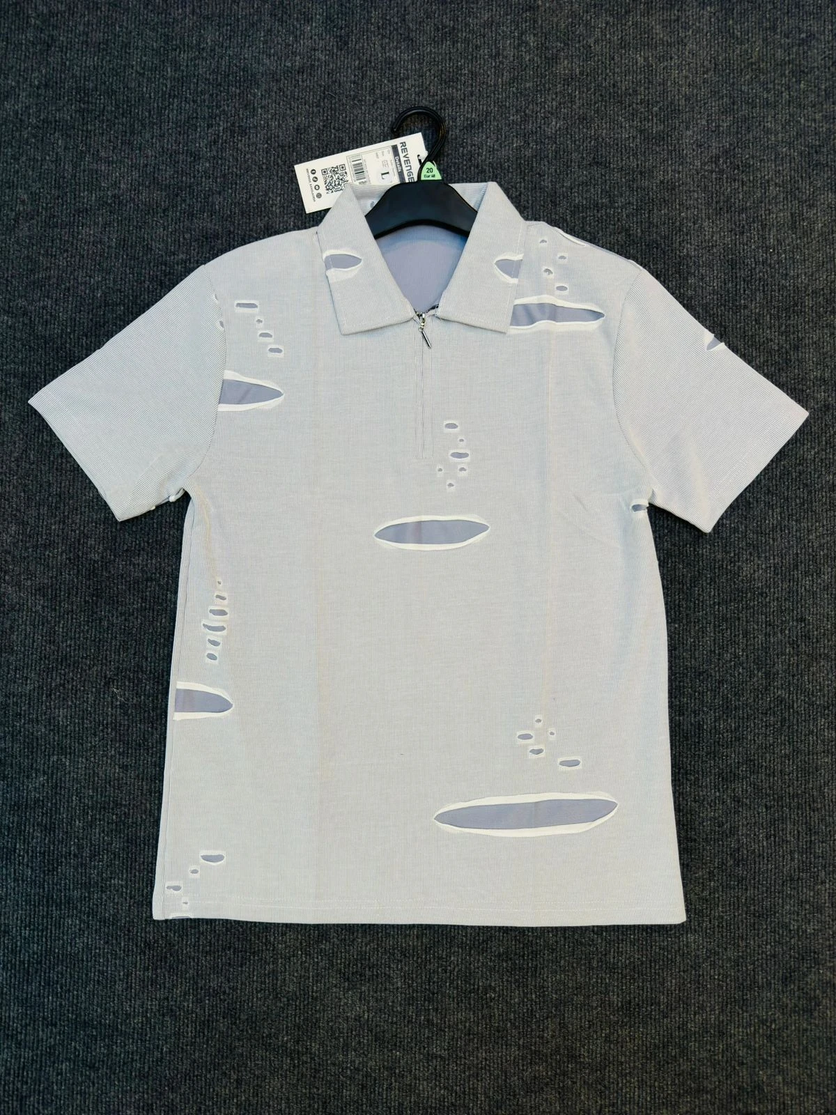 This Urban Ripped Polo – Sand Beige brings a perfect mix of distressed detailing and modern comfort. Featuring stylish torn patterns, a half-zip collar, and a soft stretchable fabric – this tee gives you a rugged yet refined streetwear vibe. Ideal for casual hangouts, Instagram looks, or any day you want to keep it different.