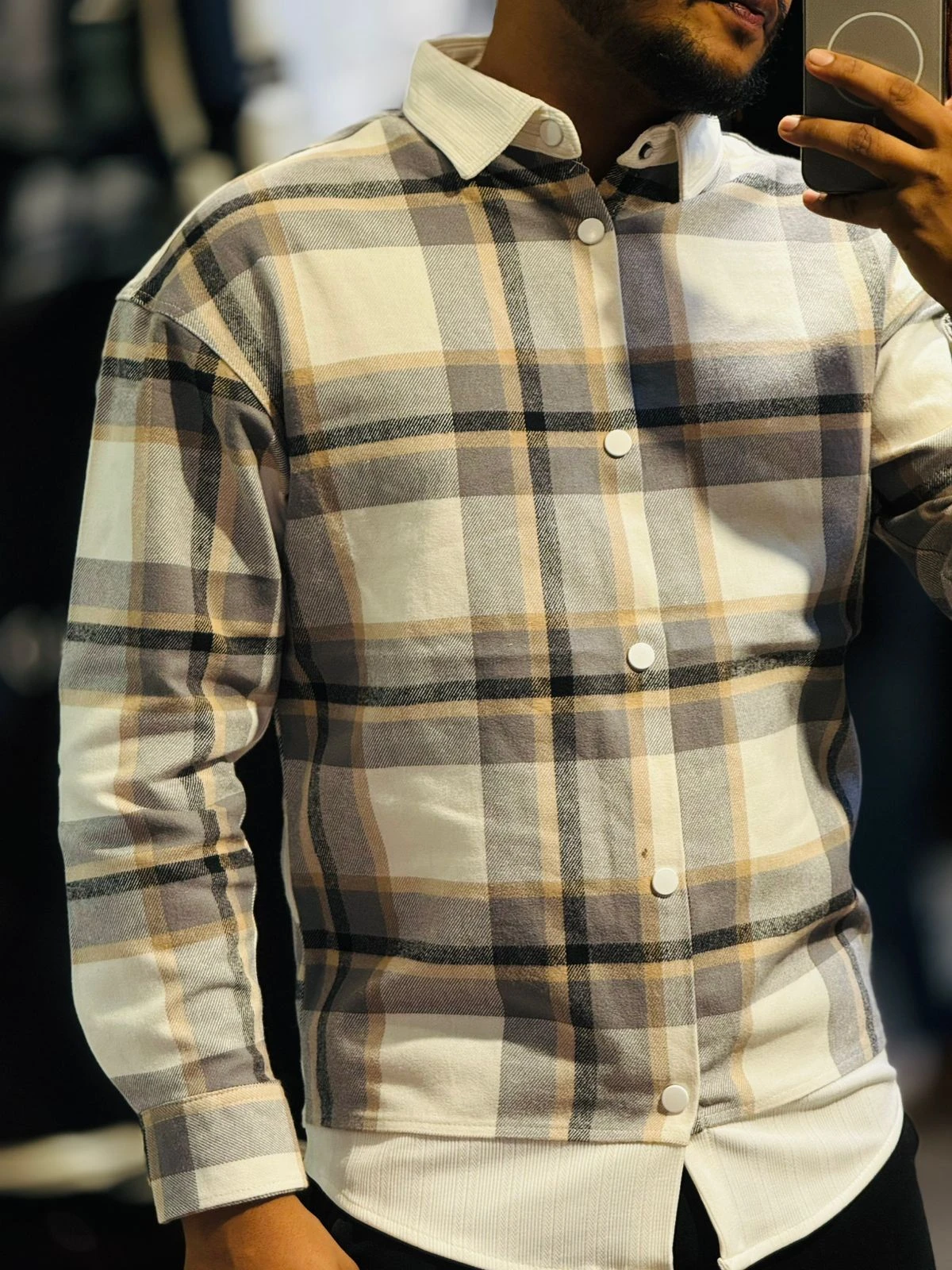Elevate your casual wardrobe with our brand new Cheek Layering Shacket. This piece is the perfect blend of a shirt's comfort and a jacket's structure, designed for a modern, smart-casual aesthetic.