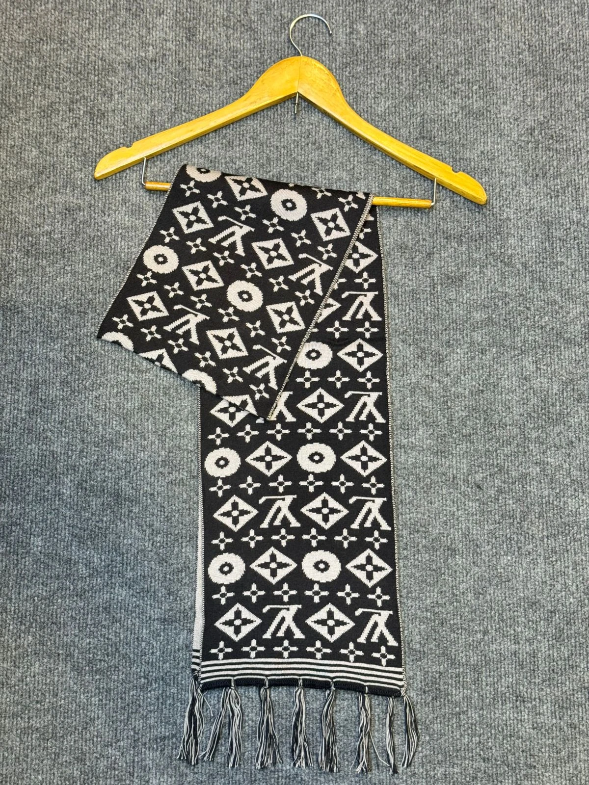 Whether you are attending a business meeting or enjoying a winter evening out, the LV Black & White Monogram Muffler ensures you stay cozy while reflecting a lifestyle of prestige and elegance. It is not just a winter essential—it is a masterpiece of designer craftsmanship.