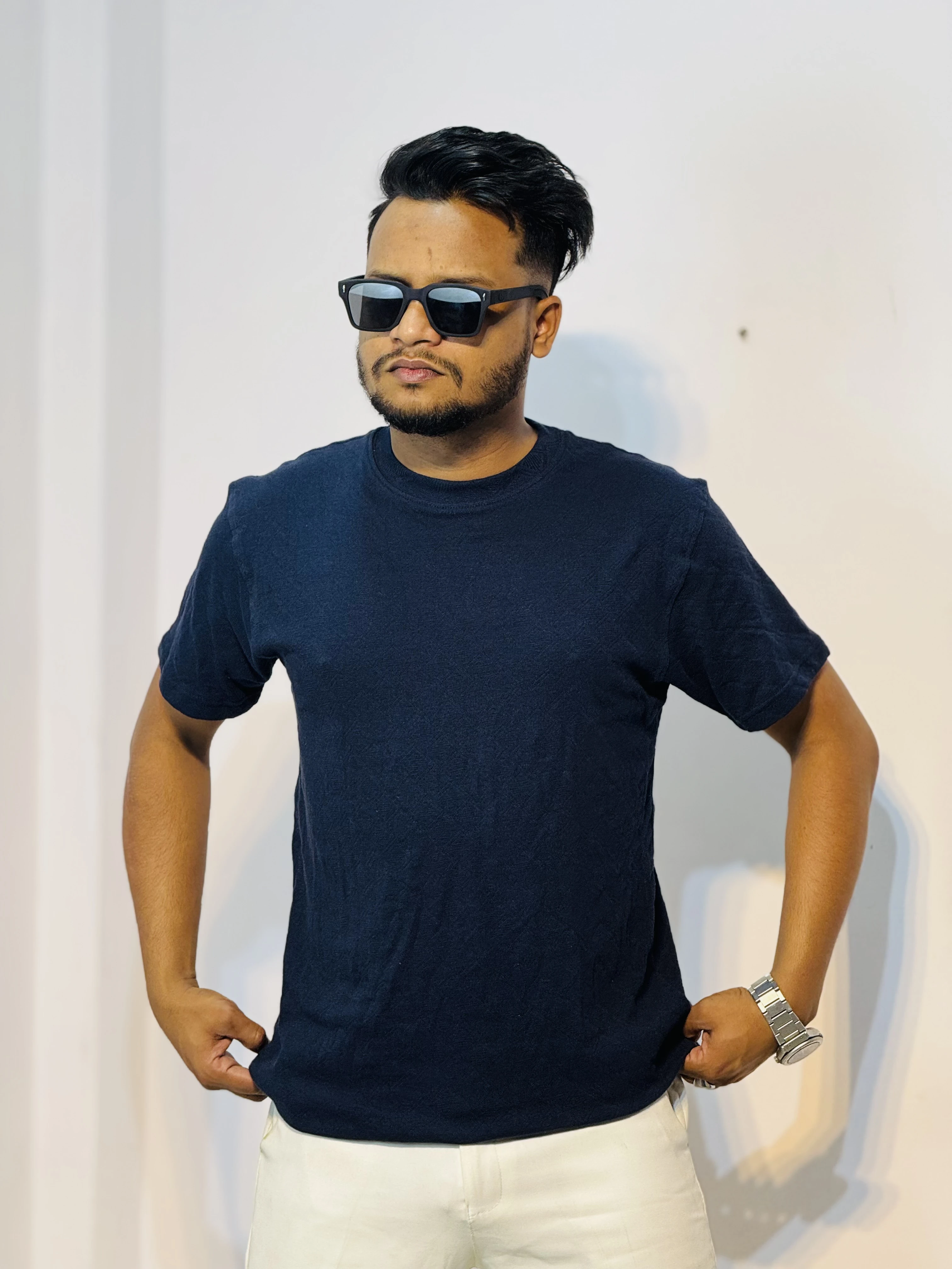 DASHING SOLID SQUARE PATTERN T-SHIRT