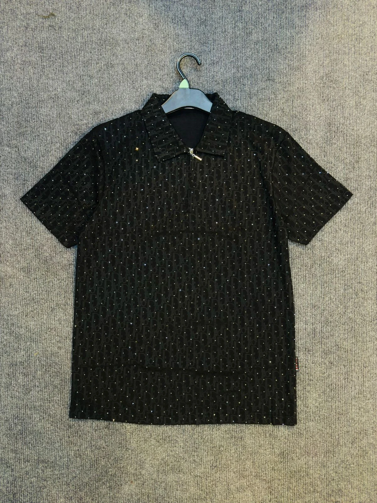 Dior Black Zipper Stone Polo– Half Sleeve Polo