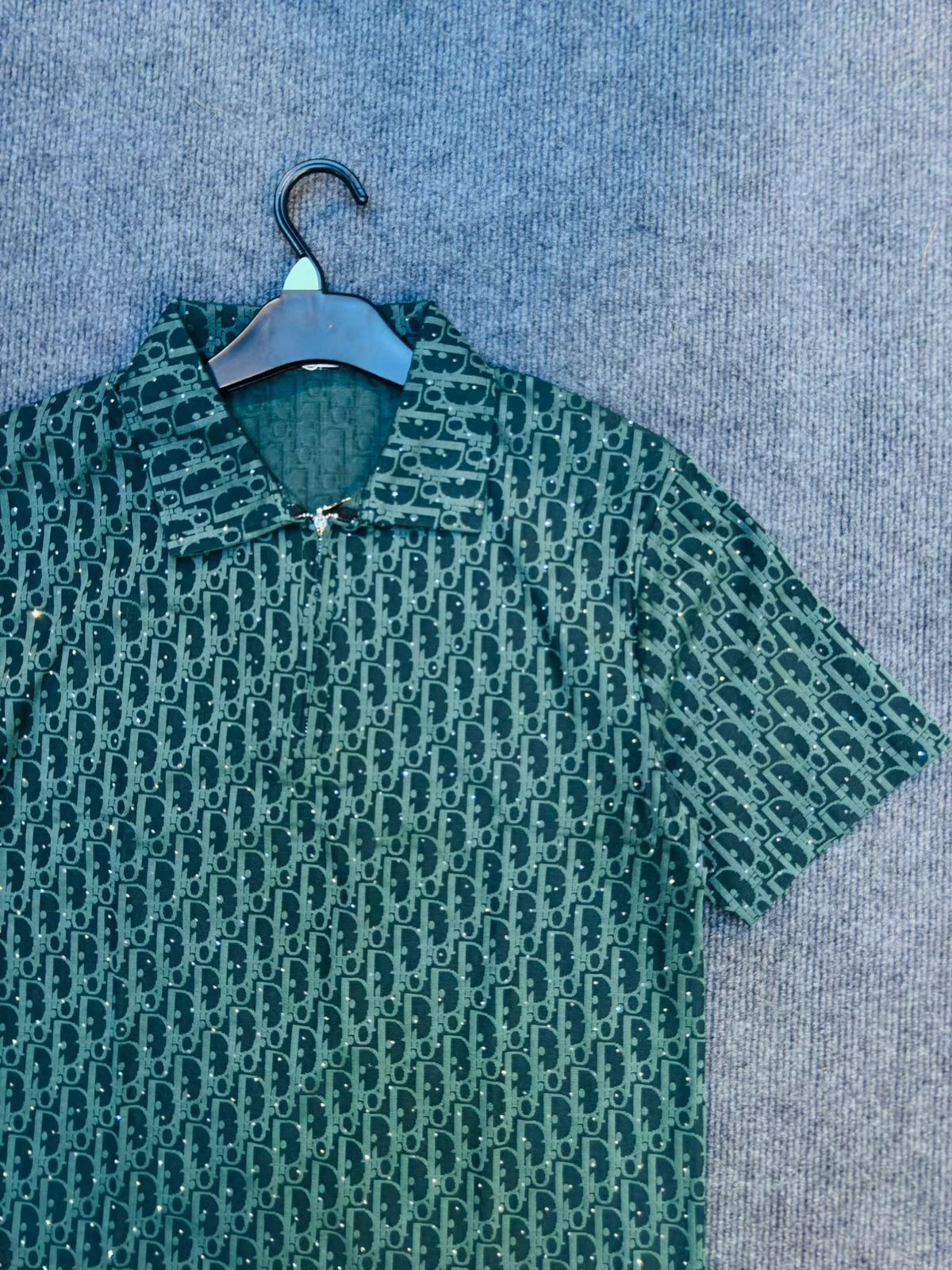 Dior Green Zipper Stone Polo– Half Sleeve Polo