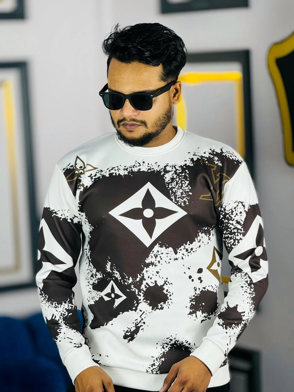 • Secondary: Abstract Print Sweatshirt, High Contrast Jumper, Luxury Inspired Streetwear, Men's Printed Pullover