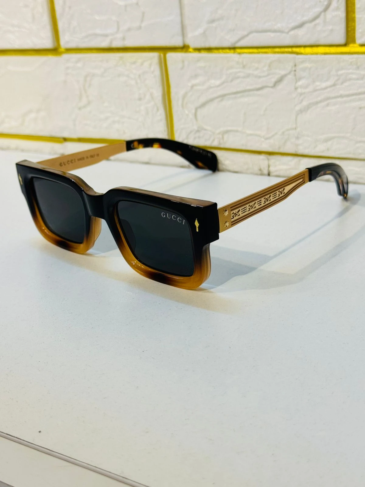 The Ultimate Power Statement. Amader Gucci Grand Flat-Top sunglasses-ti tader jonno jara luxury-ke ekti bold ebong modern rup-e dekhate pochondo koren. Er signature flat-top brow line ebong thick sculpted frame apnake dibe ekta high-fashion runway look, ja sora-sori celebrity style theke inspired.