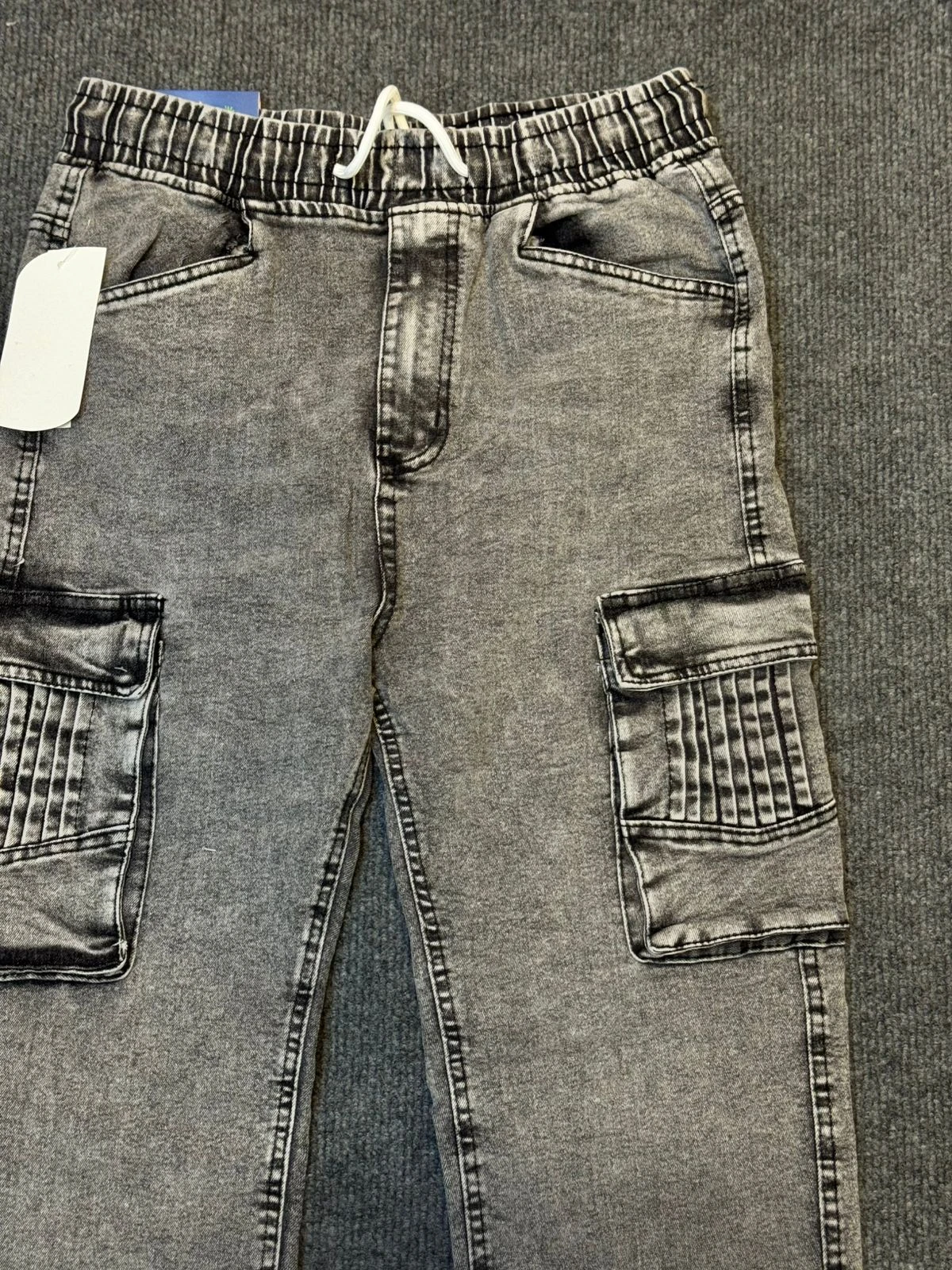 FeatureDescriptionFitBaggy / RelaxedPockets6 (Two front, two back, two cargo)WaistElastic with DrawstringColorLight Blue Denim WashStyleCargo Jeans, Streetwear