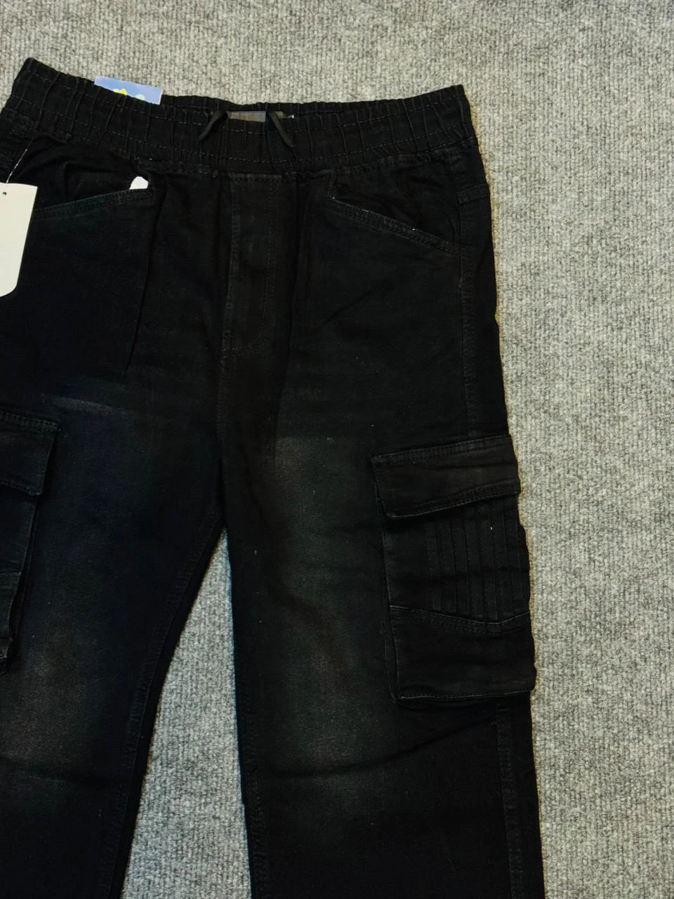 FeatureDescriptionFitBaggy / RelaxedPockets6 (Two front, two back, two cargo)WaistElastic with DrawstringColorLight Blue Denim WashStyleCargo Jeans, Streetwear