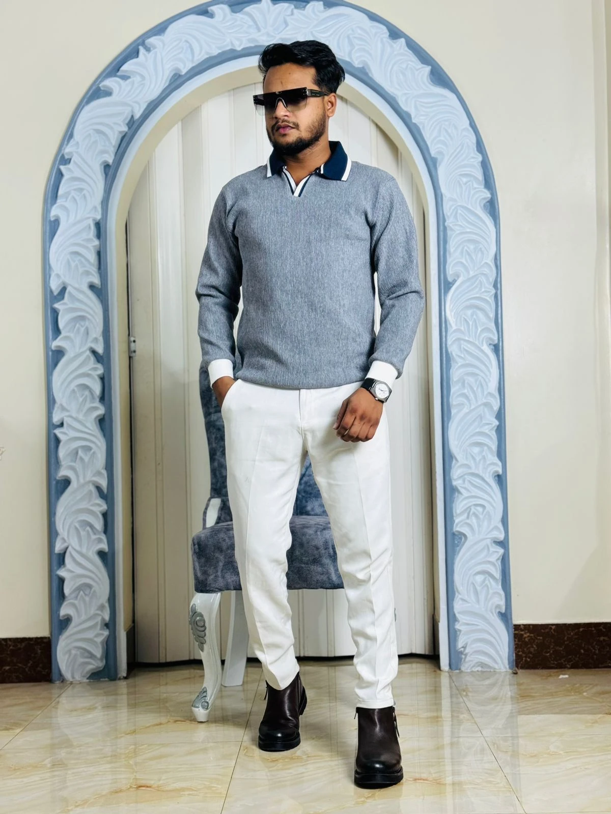 These polo sweaters pair impeccably with white chinos (as shown in the images), tailored trousers, or dark denim. Complete your 'Old Money' look with a quality watch, and footwear like loafers or Chelsea boots.