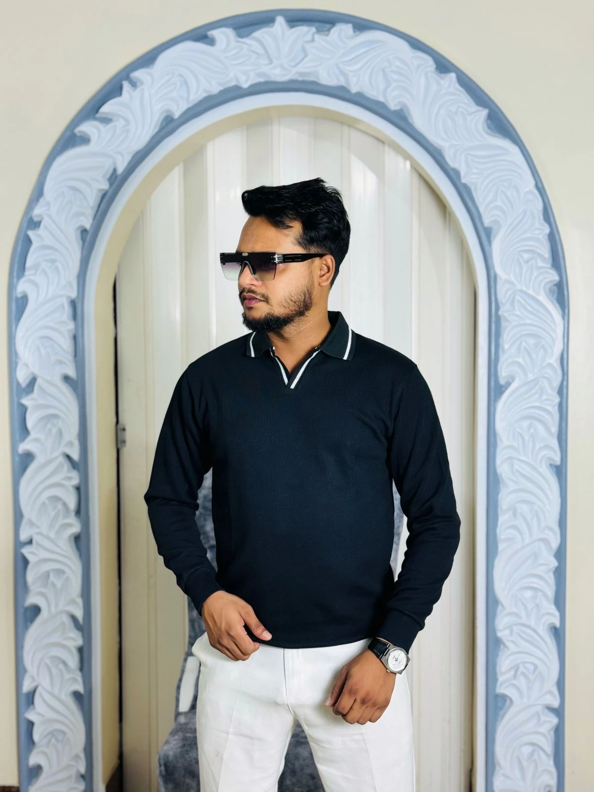 • Style Profile: A classic long-sleeve knit polo collar sweater, ideal for both relaxed and elevated casual looks.