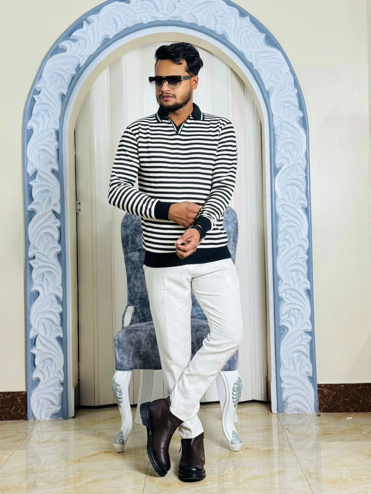• Secondary Keywords: Quiet Luxury Fashion, Men's Striped Polo, Long Sleeve Knitwear, Timeless Style, Winter Fashion, Premium Polo Knit.
