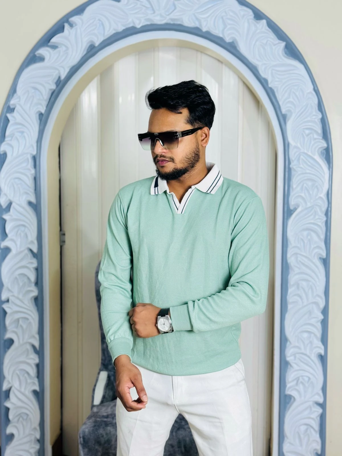 • Style Profile: A classic long-sleeve knit polo collar sweater, ideal for both relaxed and elevated casual looks.