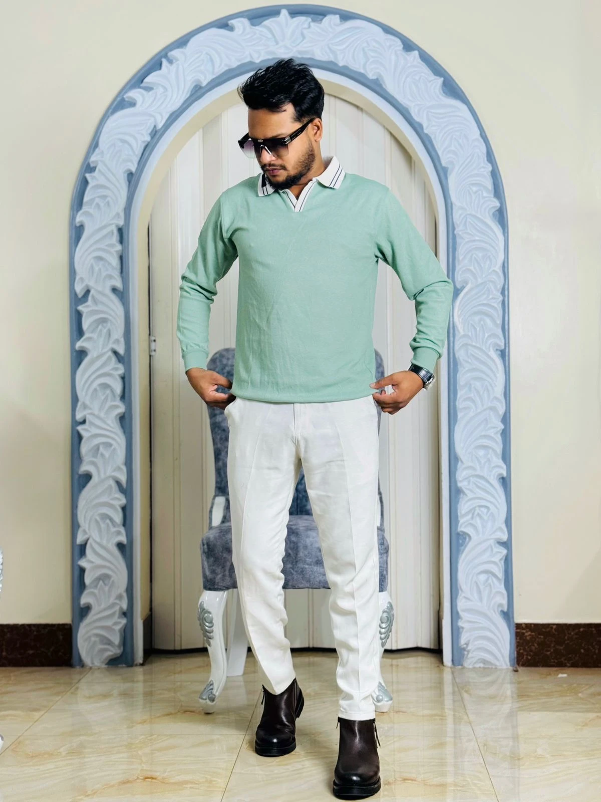 These polo sweaters pair impeccably with white chinos (as shown in the images), tailored trousers, or dark denim. Complete your 'Old Money' look with a quality watch, and footwear like loafers or Chelsea boots.