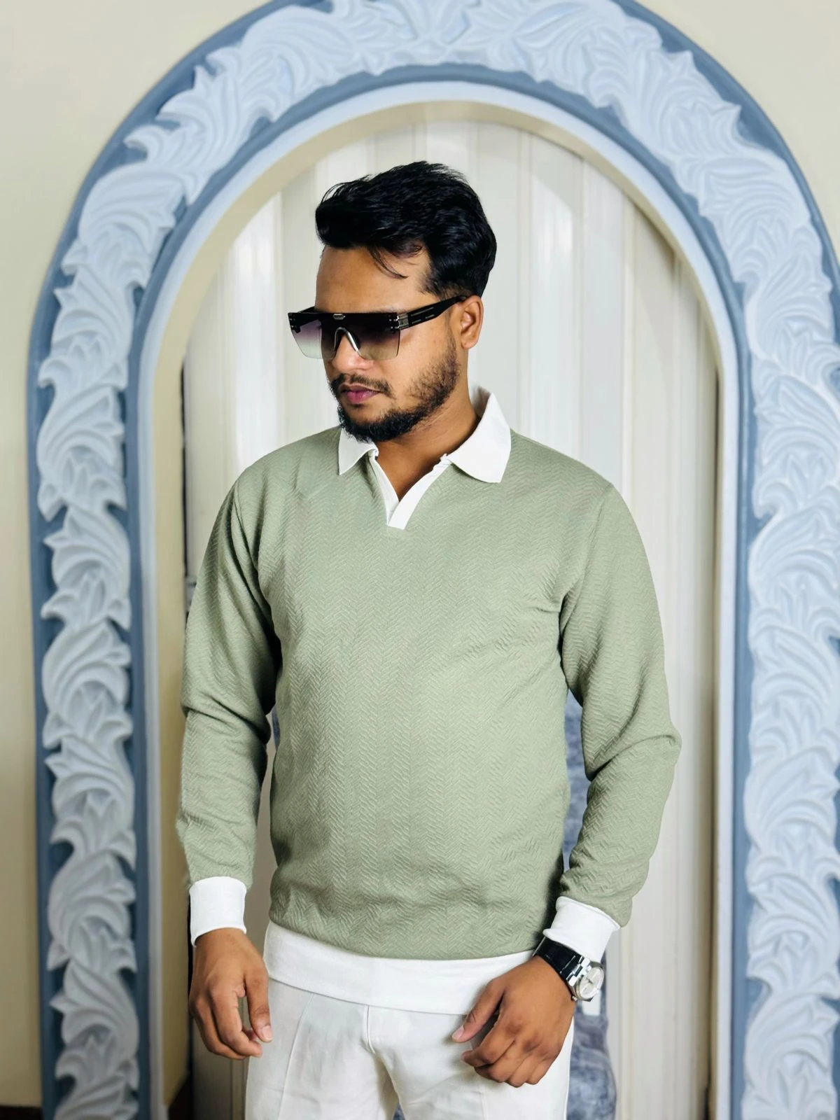 • Style Profile: A classic long-sleeve knit polo collar sweater, ideal for both relaxed and elevated casual looks.