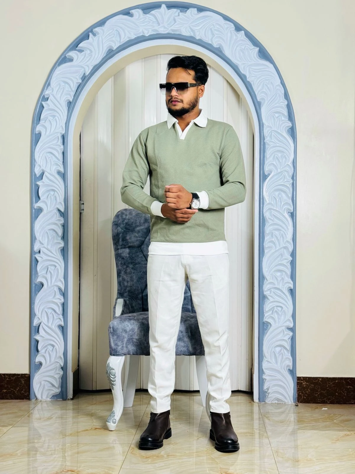 These polo sweaters pair impeccably with white chinos (as shown in the images), tailored trousers, or dark denim. Complete your 'Old Money' look with a quality watch, and footwear like loafers or Chelsea boots.