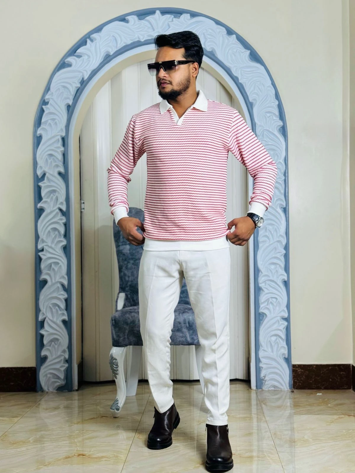• Secondary Keywords: Quiet Luxury Fashion, Men's Striped Polo, Long Sleeve Knitwear, Timeless Style, Winter Fashion, Premium Polo Knit.