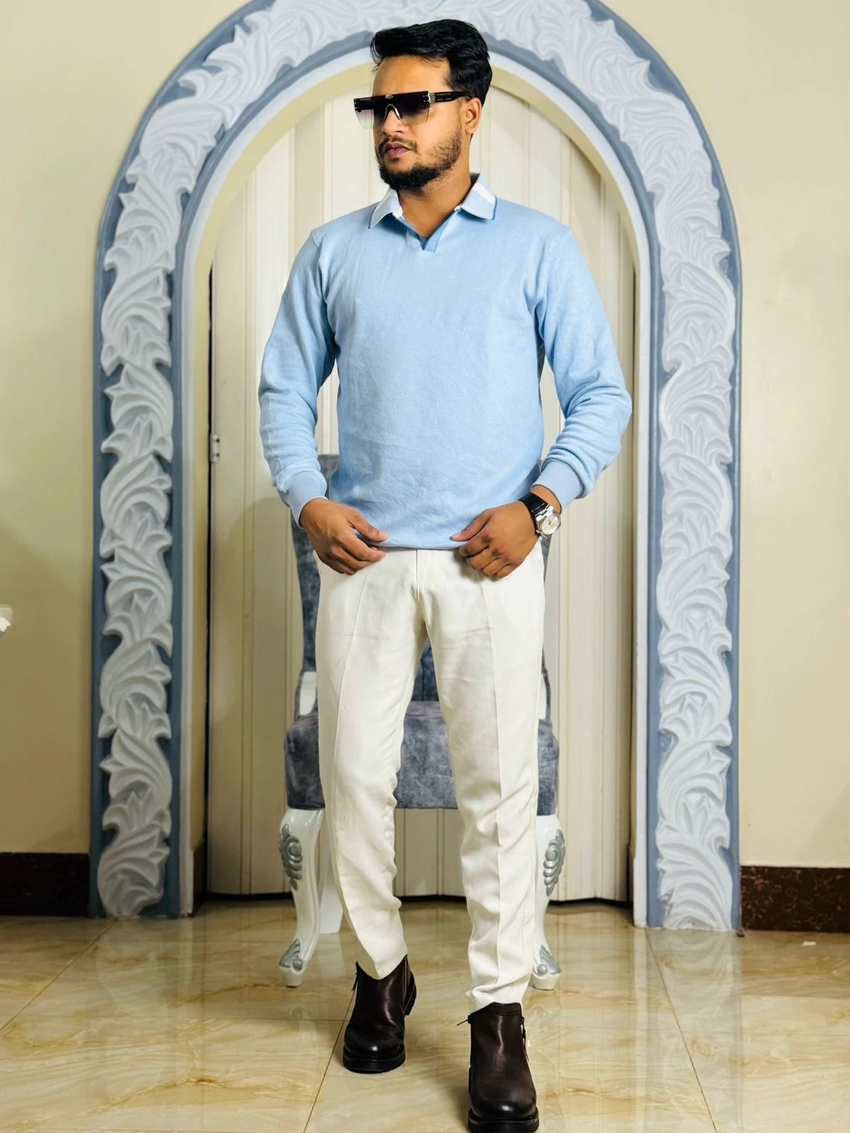 These polo sweaters pair impeccably with white chinos (as shown in the images), tailored trousers, or dark denim. Complete your 'Old Money' look with a quality watch, and footwear like loafers or Chelsea boots.