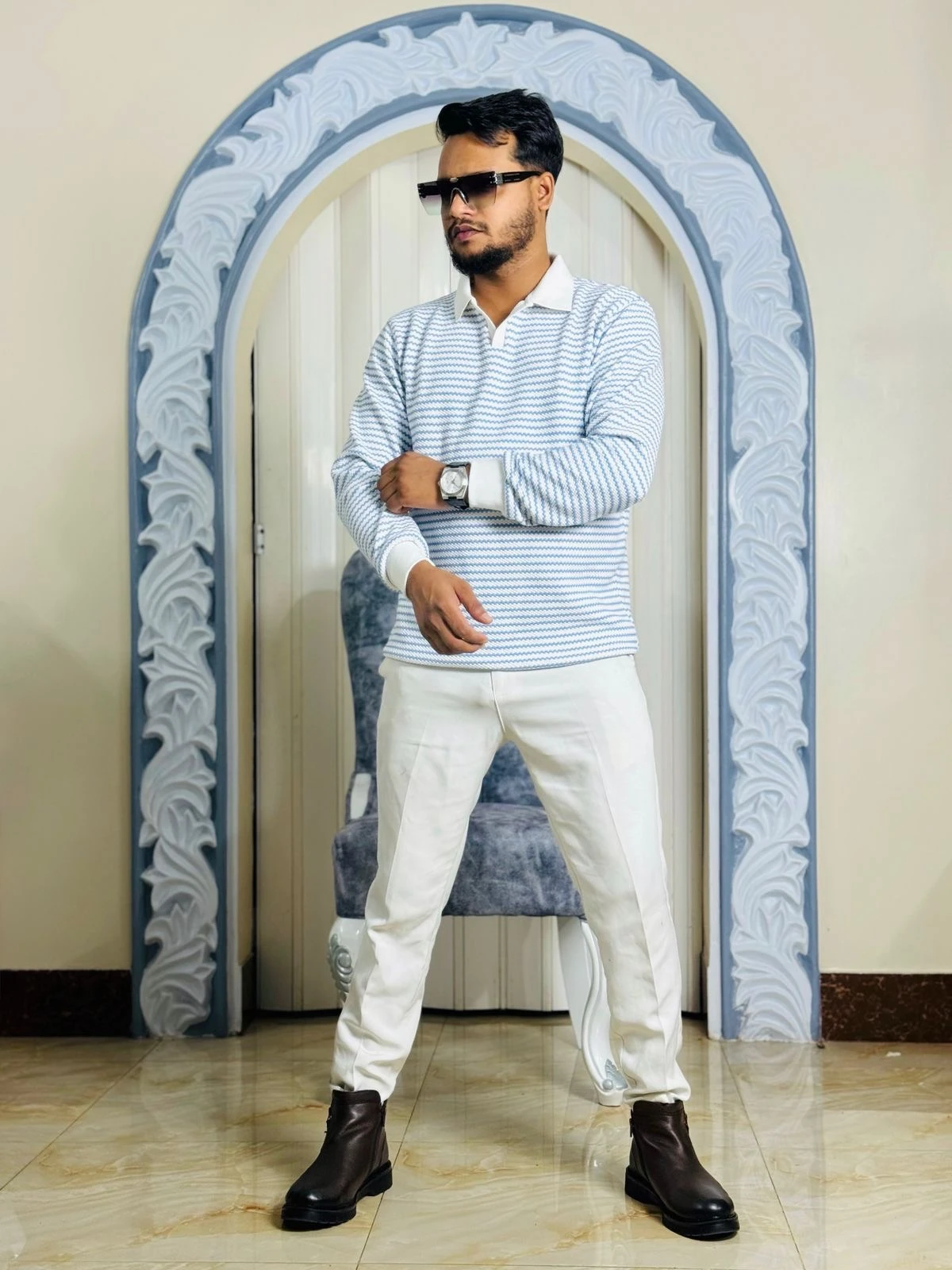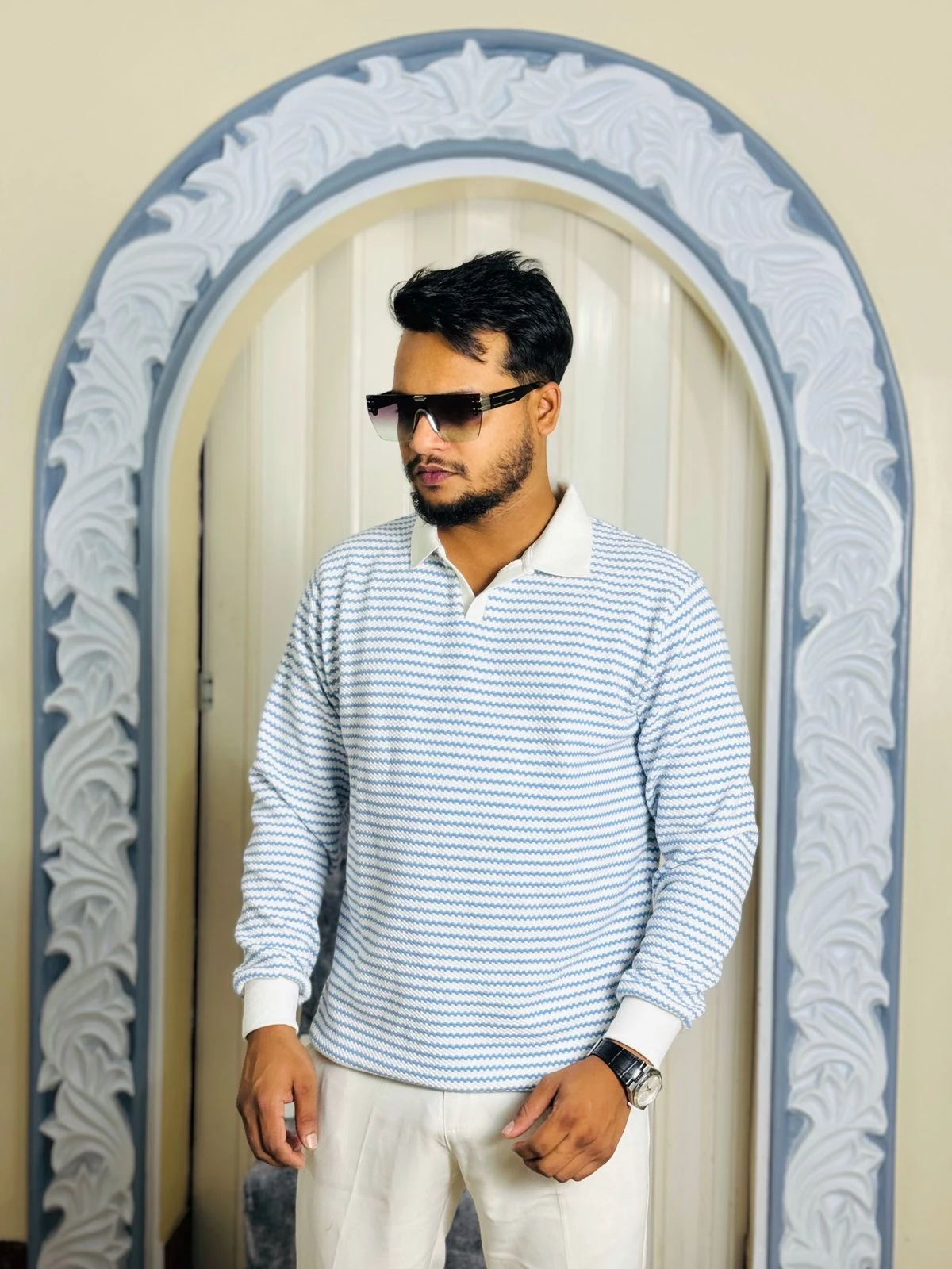 These polo sweaters pair impeccably with white chinos (as shown in the images), tailored trousers, or dark denim. Complete your 'Old Money' look with a quality watch, and footwear like loafers or Chelsea boots.