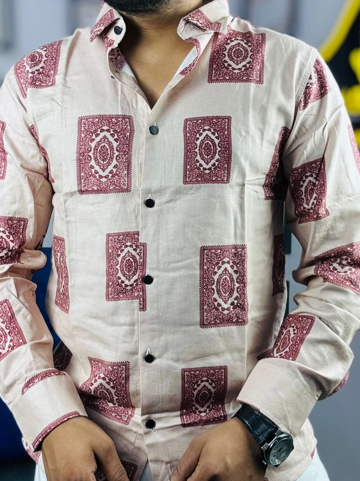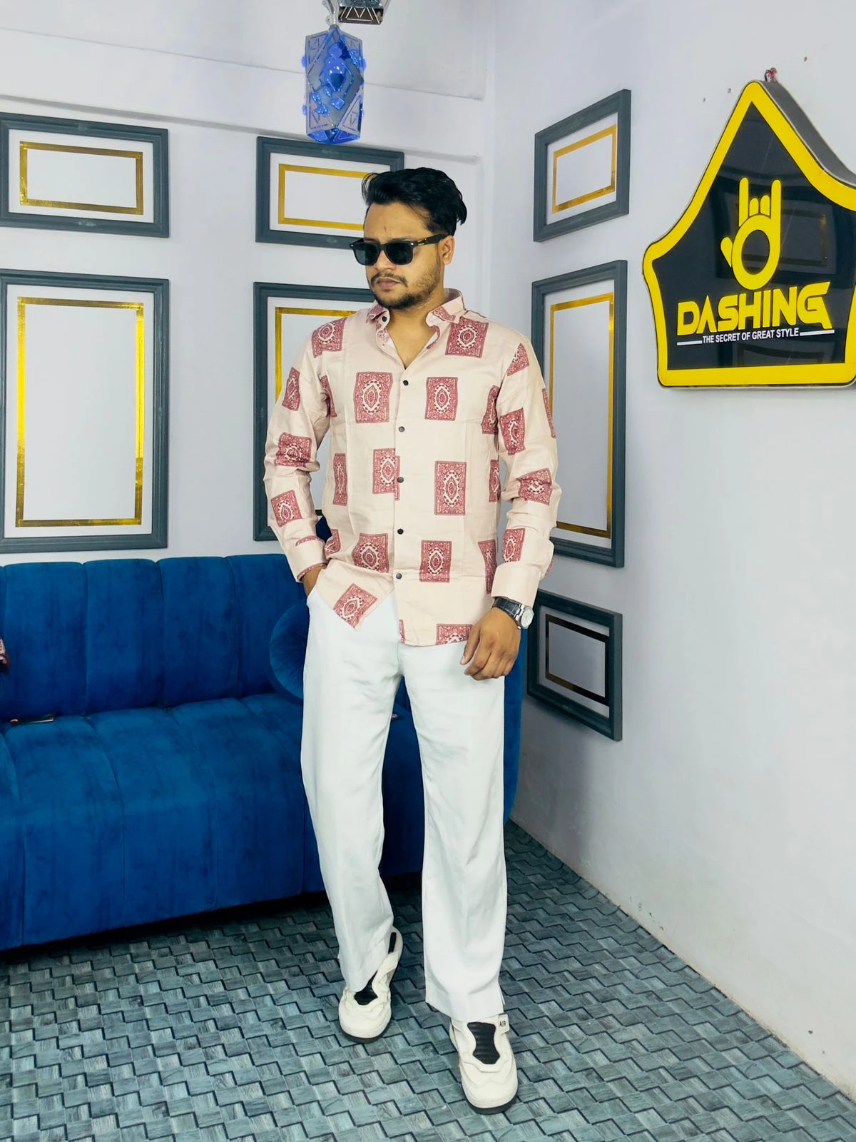 Ornate Box Print Premium Casual Shirt - Dusty Rose
