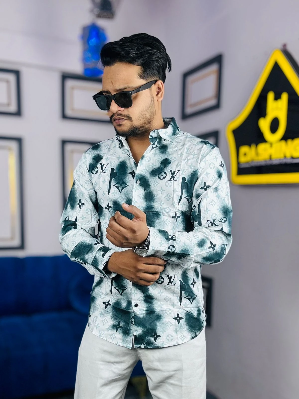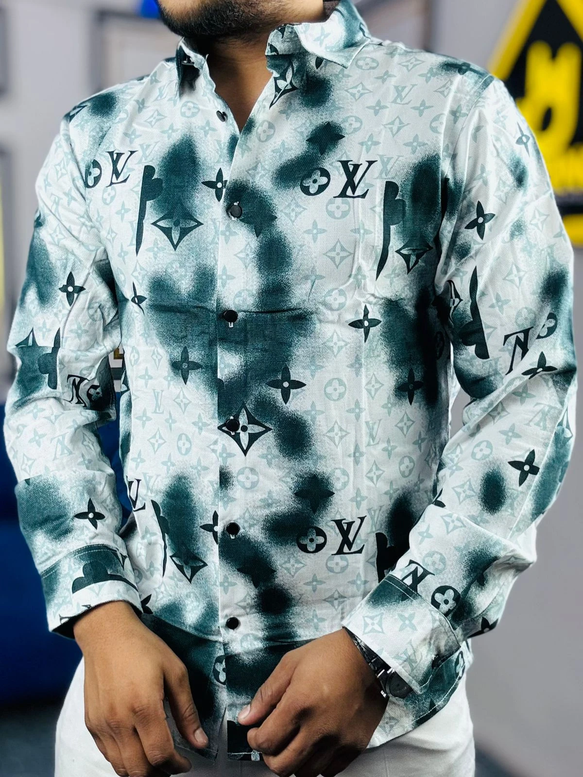 Elevate your wardrobe with our "Cloud Monogram" edition—a perfect blend of street-style aesthetics and high-end luxury. This shirt features a unique, misty ink-blot texture overlaid with a sophisticated monogram pattern, creating a bold visual statement for the modern man.