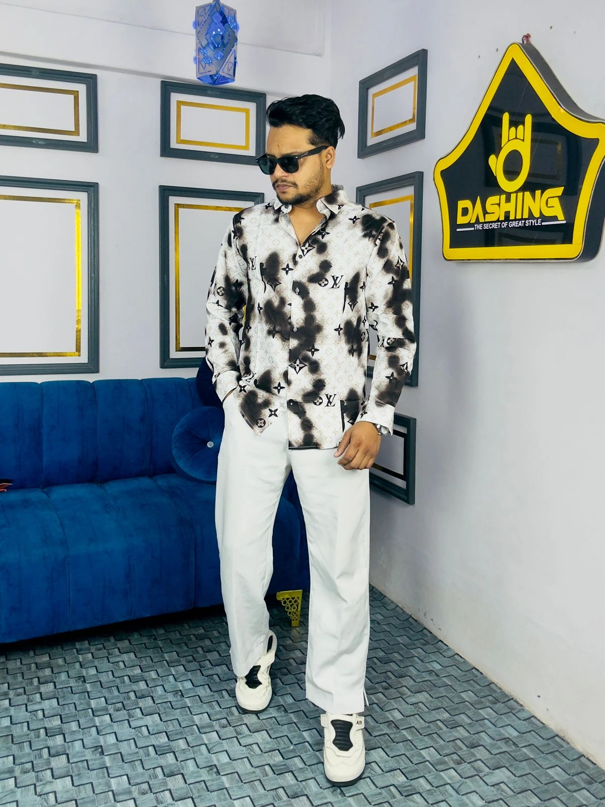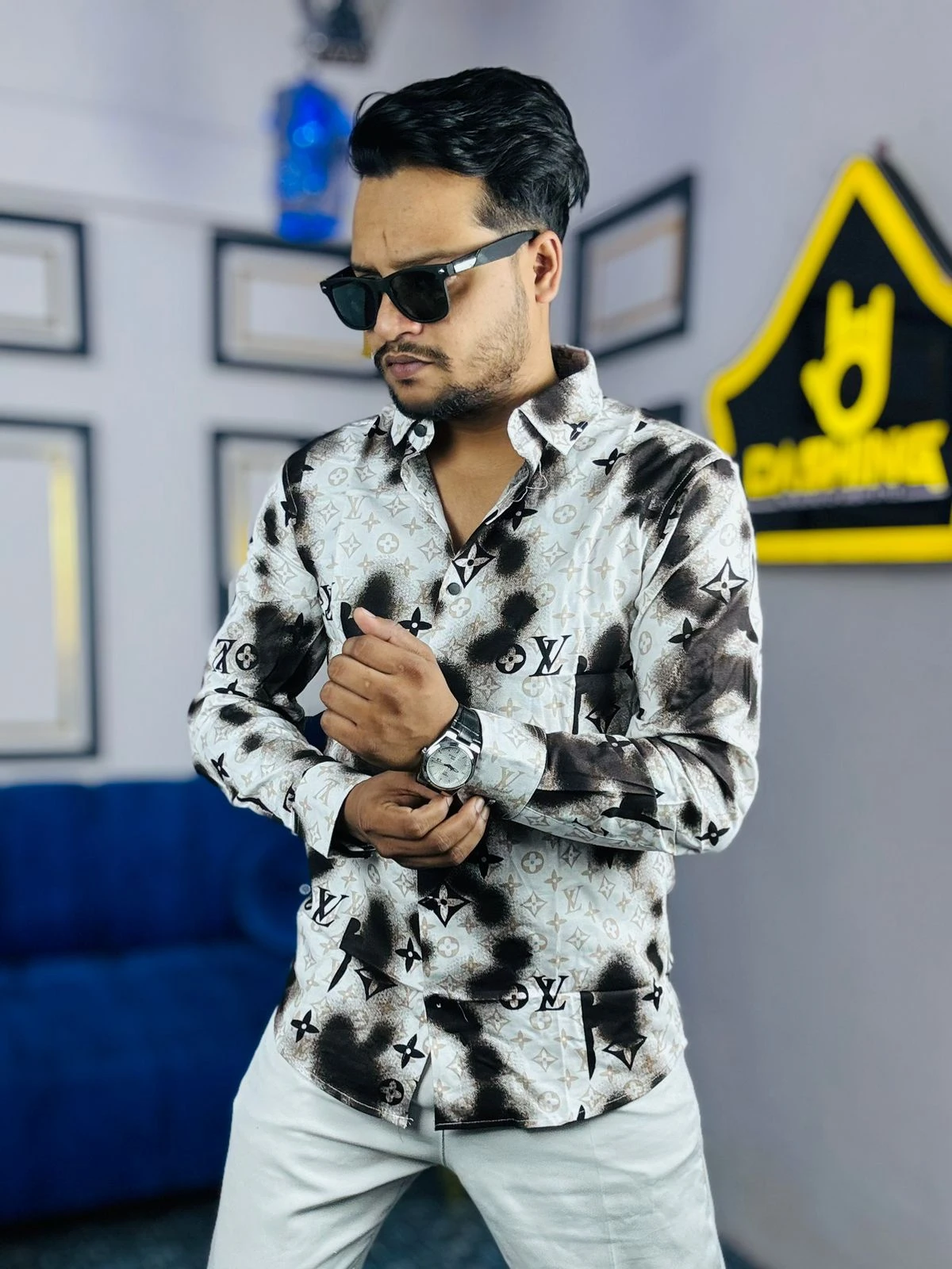 Elevate your wardrobe with our "Cloud Monogram" edition—a perfect blend of street-style aesthetics and high-end luxury. This shirt features a unique, misty ink-blot texture overlaid with a sophisticated monogram pattern, creating a bold visual statement for the modern man.