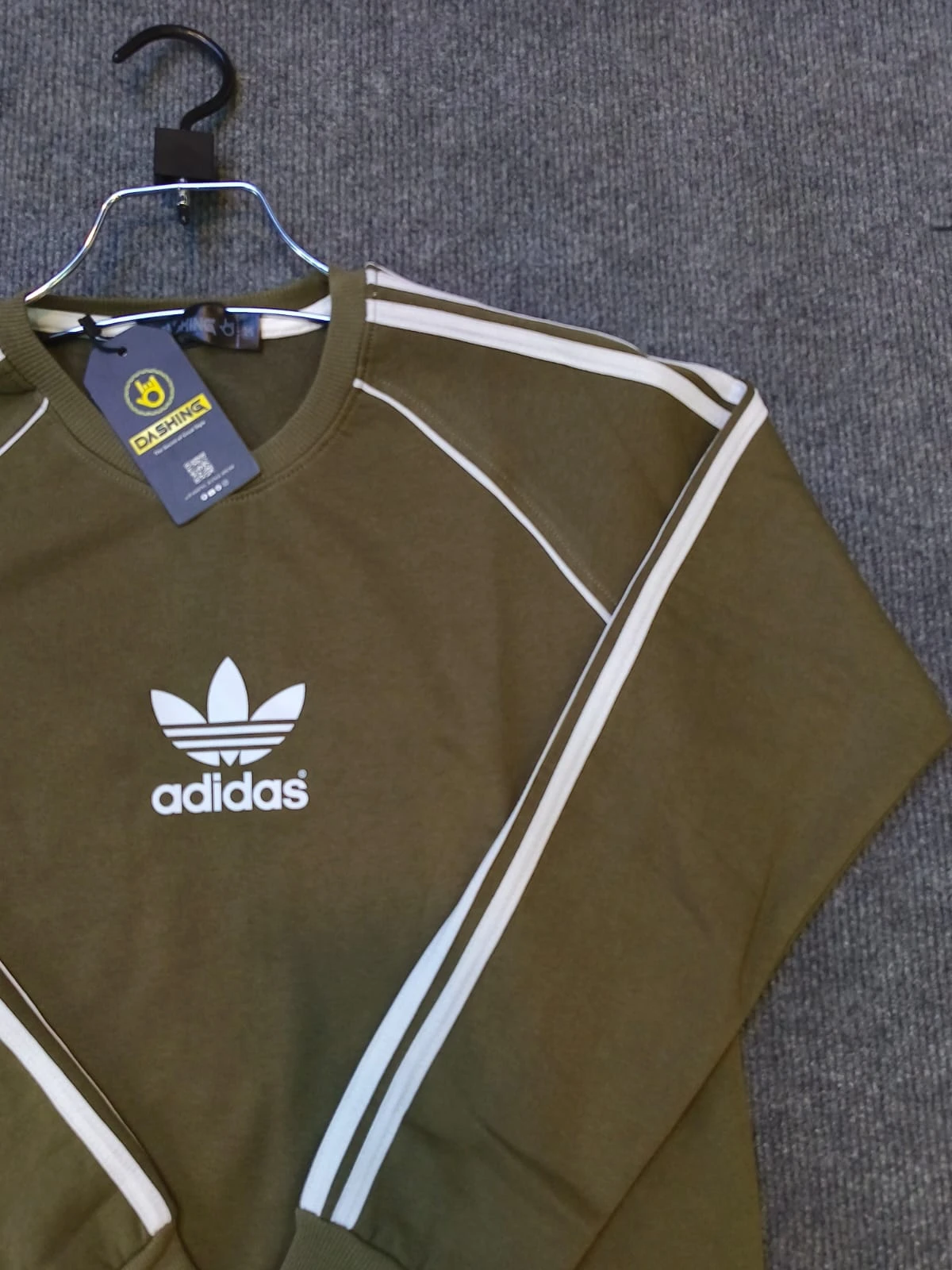 Elevate your everyday street style with our Premium Stripe Adidas Sweatshirt in a sophisticated Olive green. Designed for those who value both comfort and iconic aesthetics, this sweatshirt is a versatile must-have for your wardrobe.