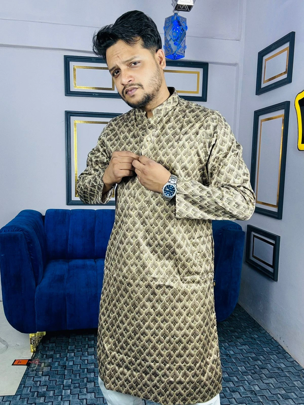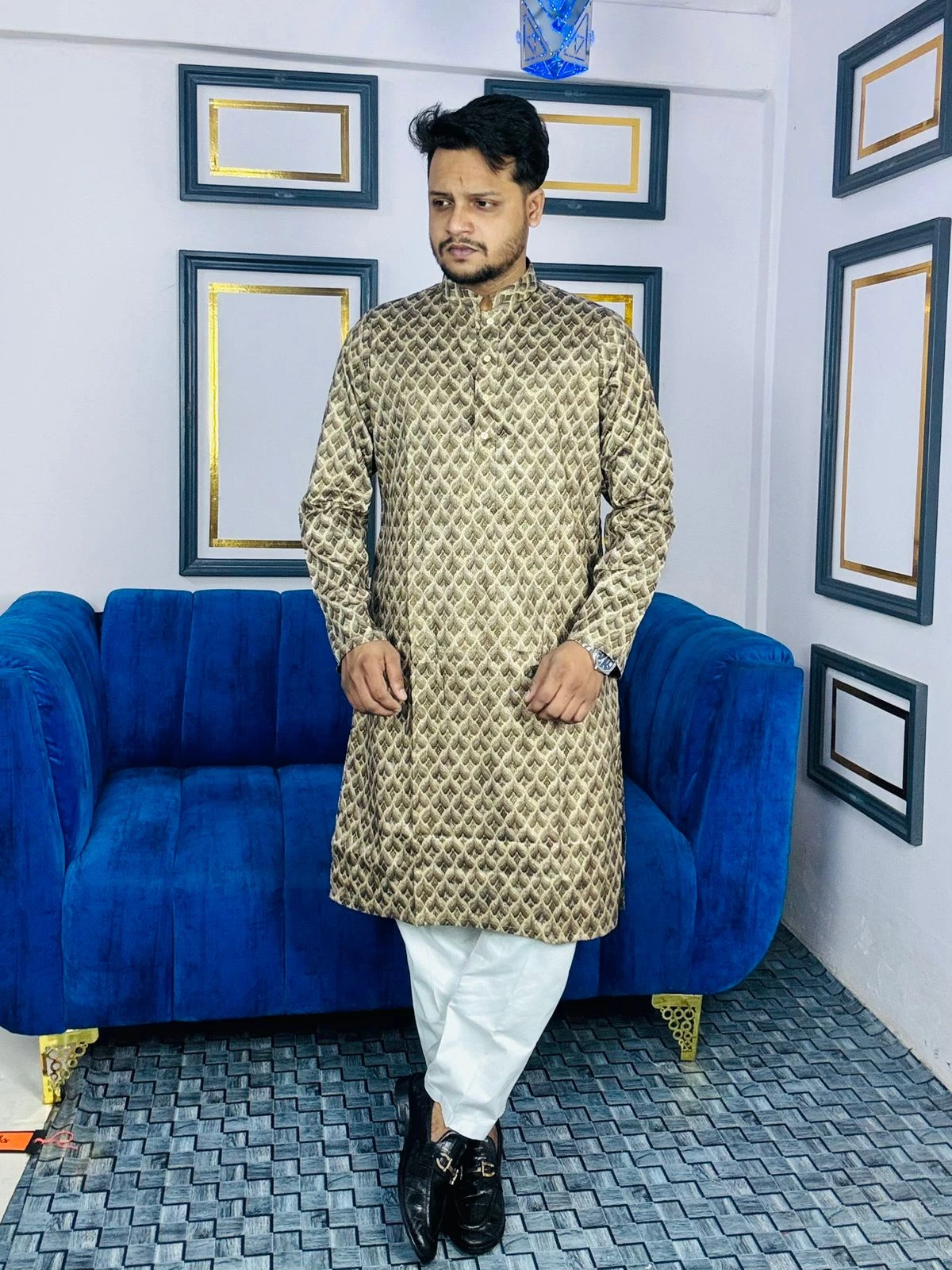 Royal Ethnic Printed Panjabi - Antique Bronze
