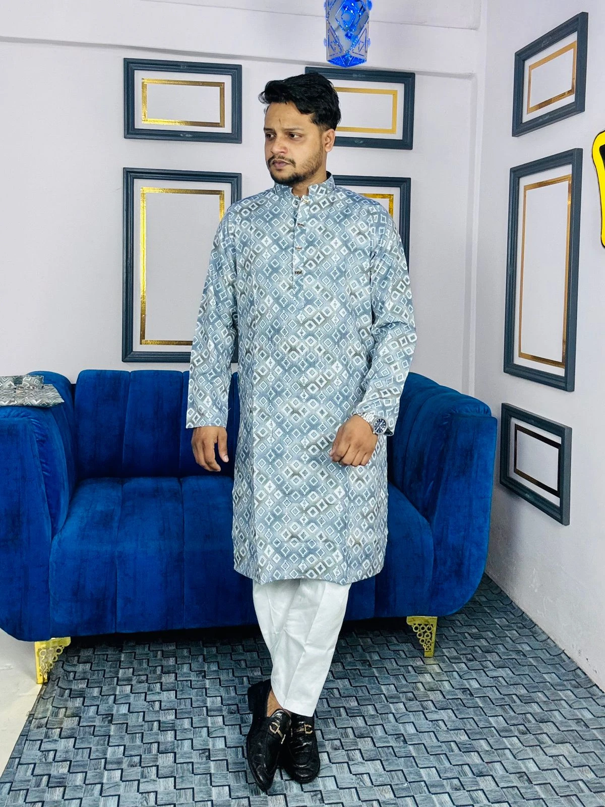 Royal Ethnic Printed Panjabi - Slate Blue