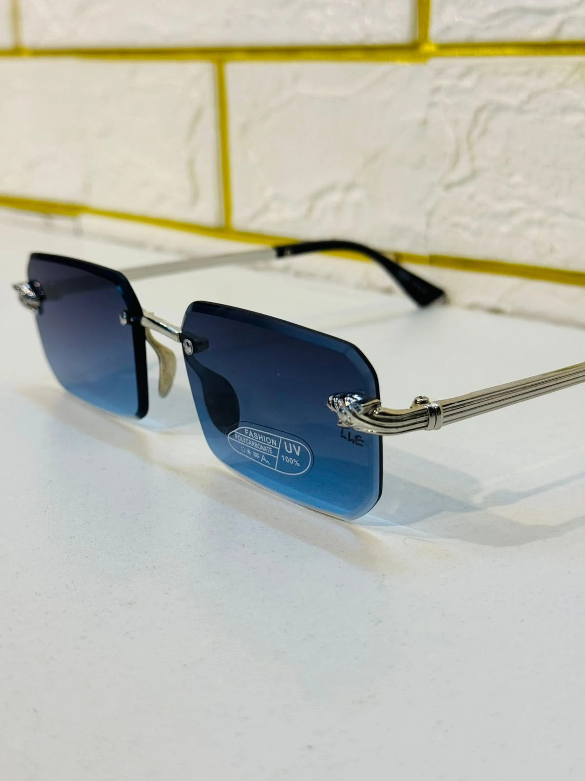 A Statement of Modern Luxury. Amader Titan Rimless Sunglasses-ti tader jonno toiri jara minimal kintu high-end design pochondo koren. Er rimless design ebong textured metallic temples er combination-ti apnake dibe ekta sharp and futuristic look.