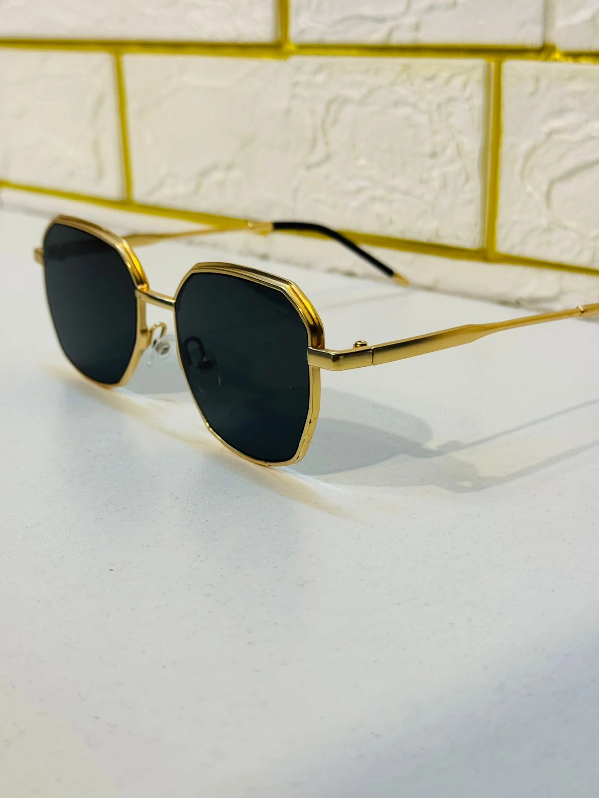 The Gold Standard of Elegance. Amader Noble Crown Sunglasses-ti tader jonno jara timeless fashion ebong sophisticated details pochondo koren. Er sleek gold-tone metal frame ebong unique geometric shape apnake dibe ekta distinguished ebong high-class look.