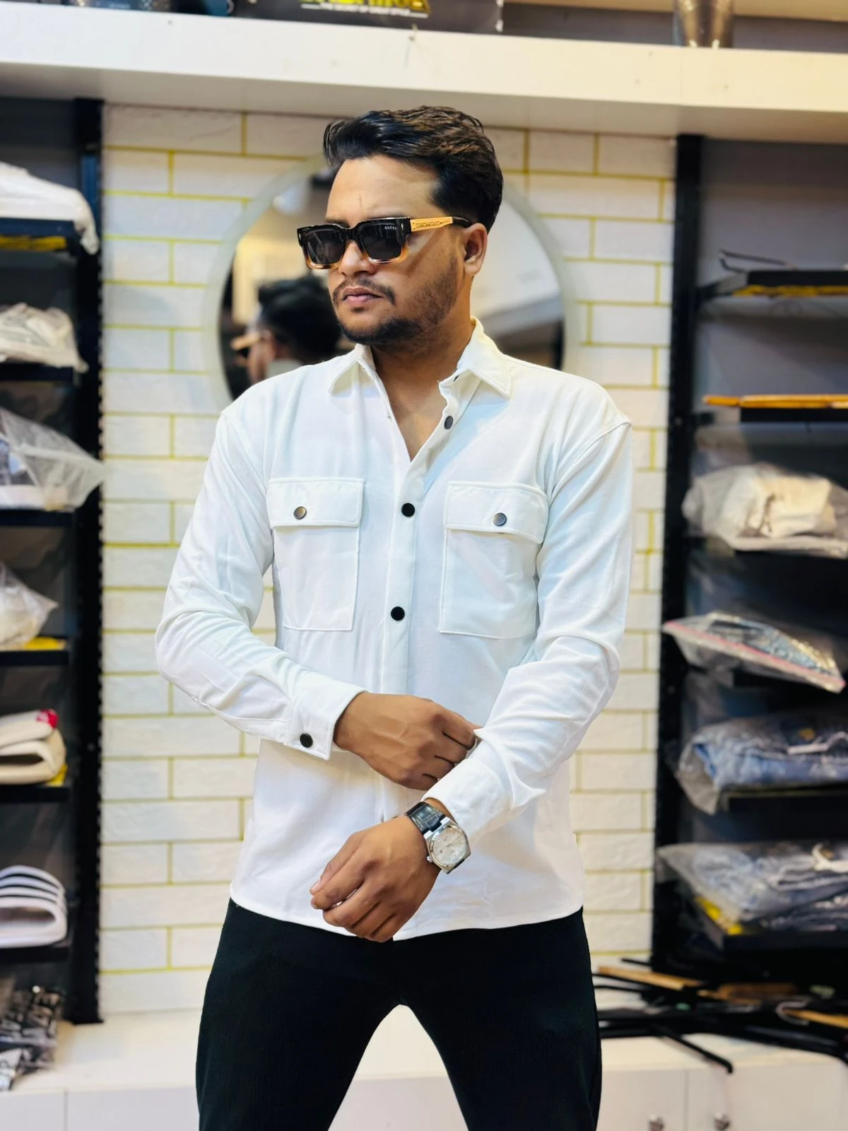 • Utility Aesthetic: Iconic double chest pockets for a structured, masculine look.