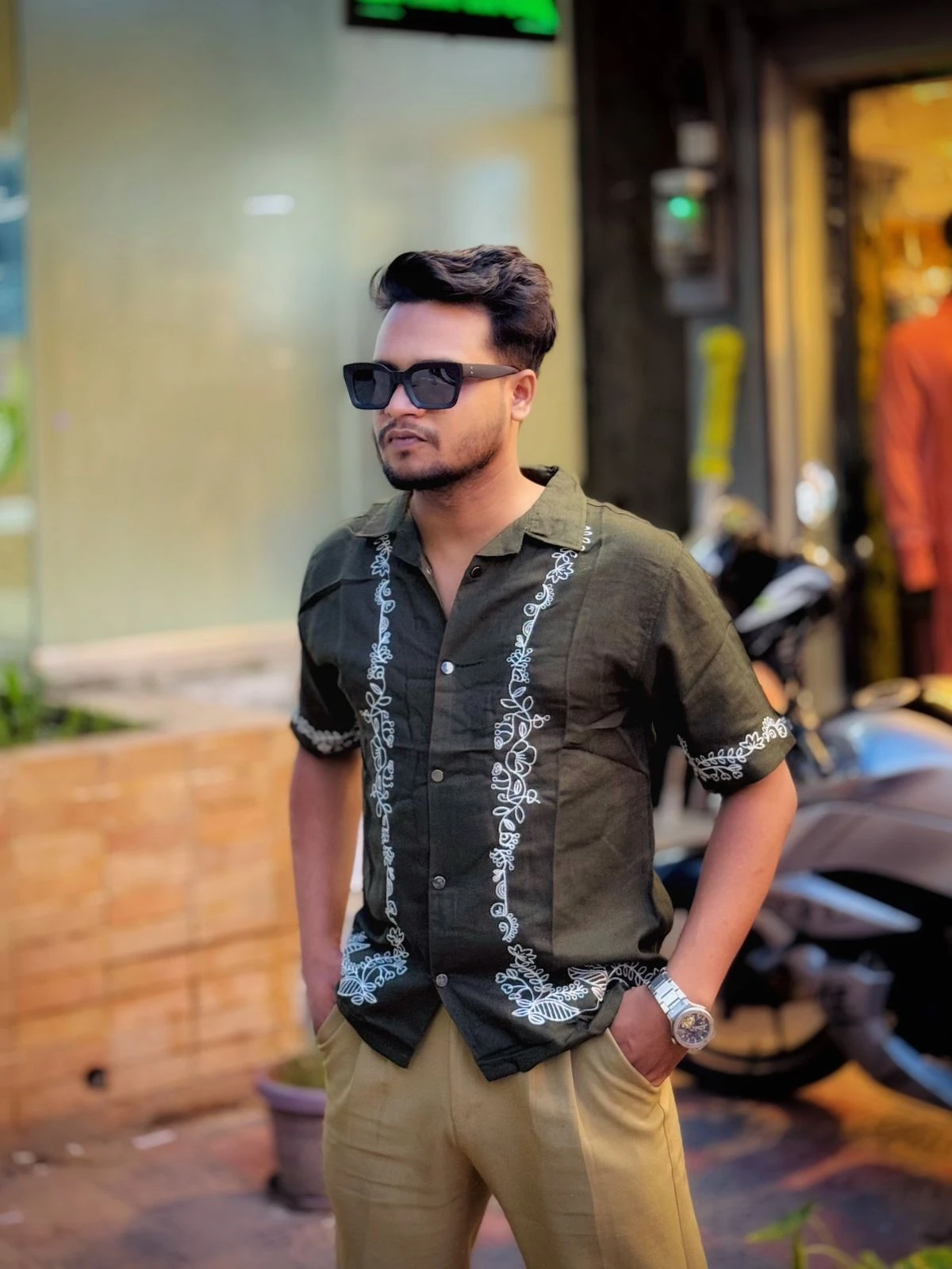 URBAN TEXTURED COTTON PREMIUM URBAN CUBAN HALF SHIRT