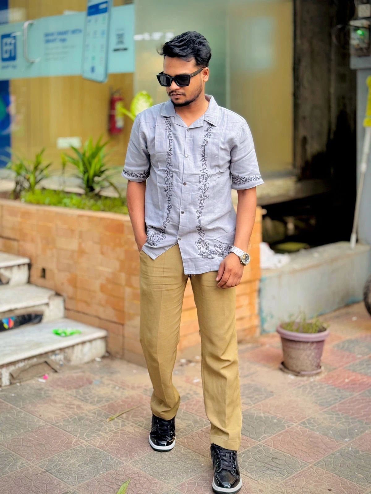 URBAN TEXTURED COTTON PREMIUM URBAN CUBAN HALF SHIRT