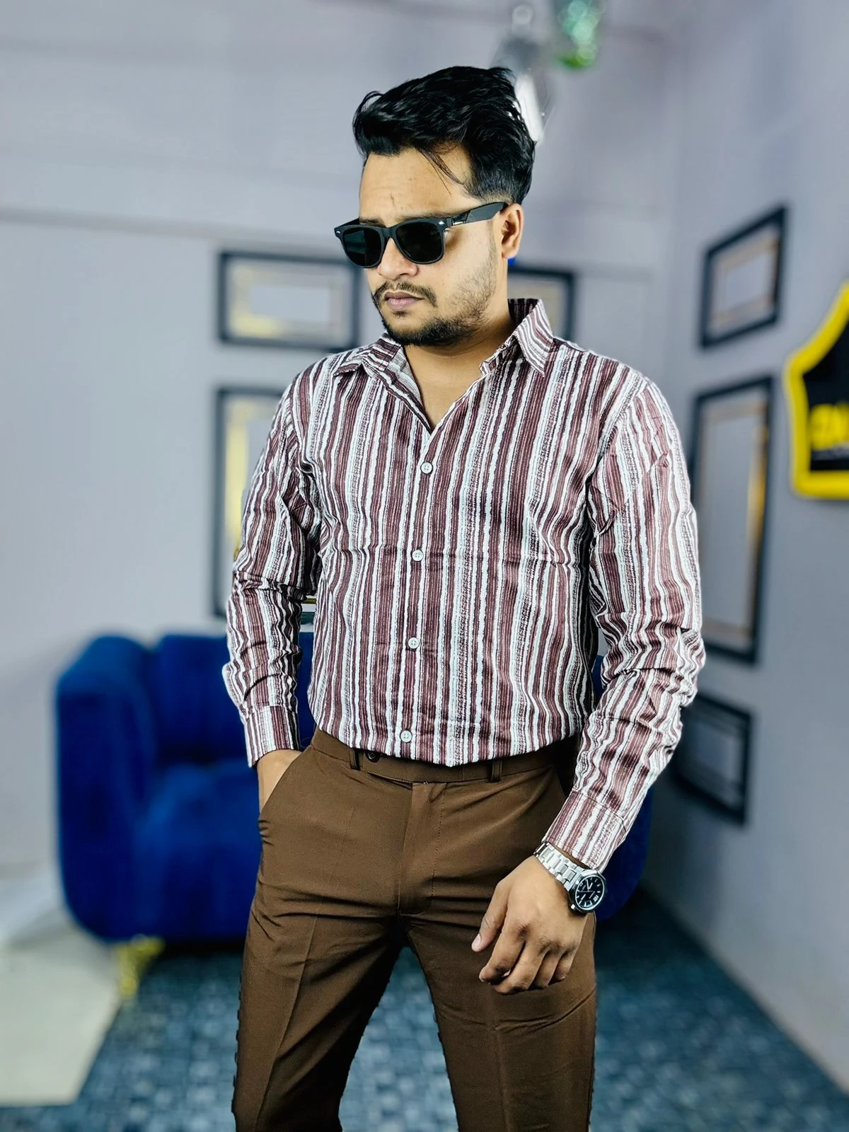 𝚃𝚑𝚎 𝙳𝚎𝚝𝚊𝚒𝚕𝚜: Featuring a precision-engineered vertical stripe pattern that elongates the silhouette and commands respect.