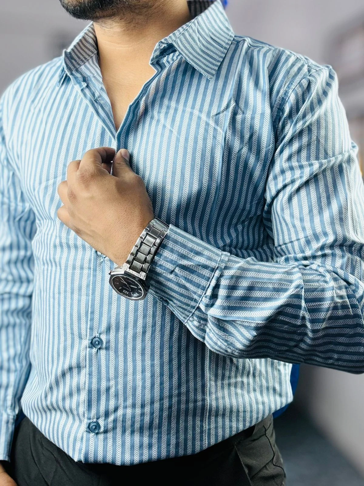 • 𝚃𝚑𝚎 𝙳𝚎𝚝𝚊𝚒𝚕𝚜: Featuring a precision-engineered vertical stripe pattern that elongates the silhouette and commands respect.