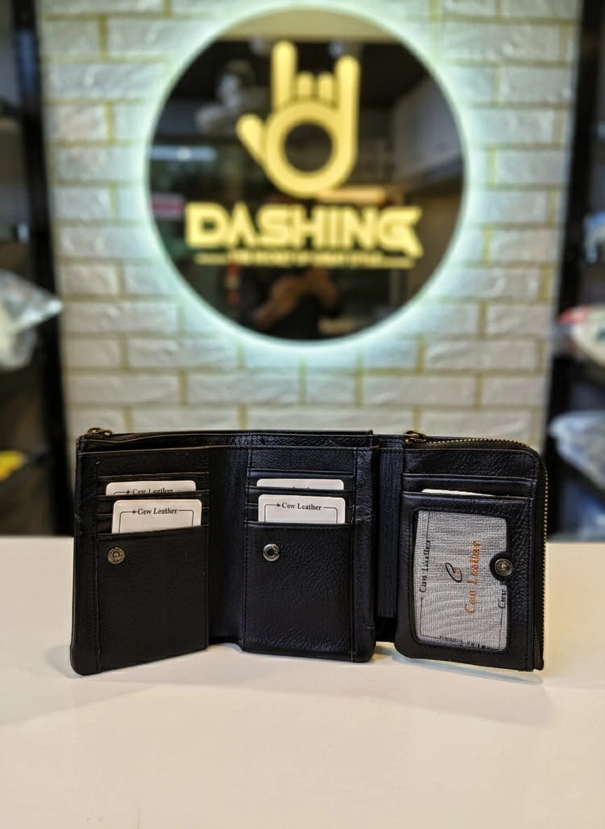 Zippered Triple-Fold Cow Leather Wallet